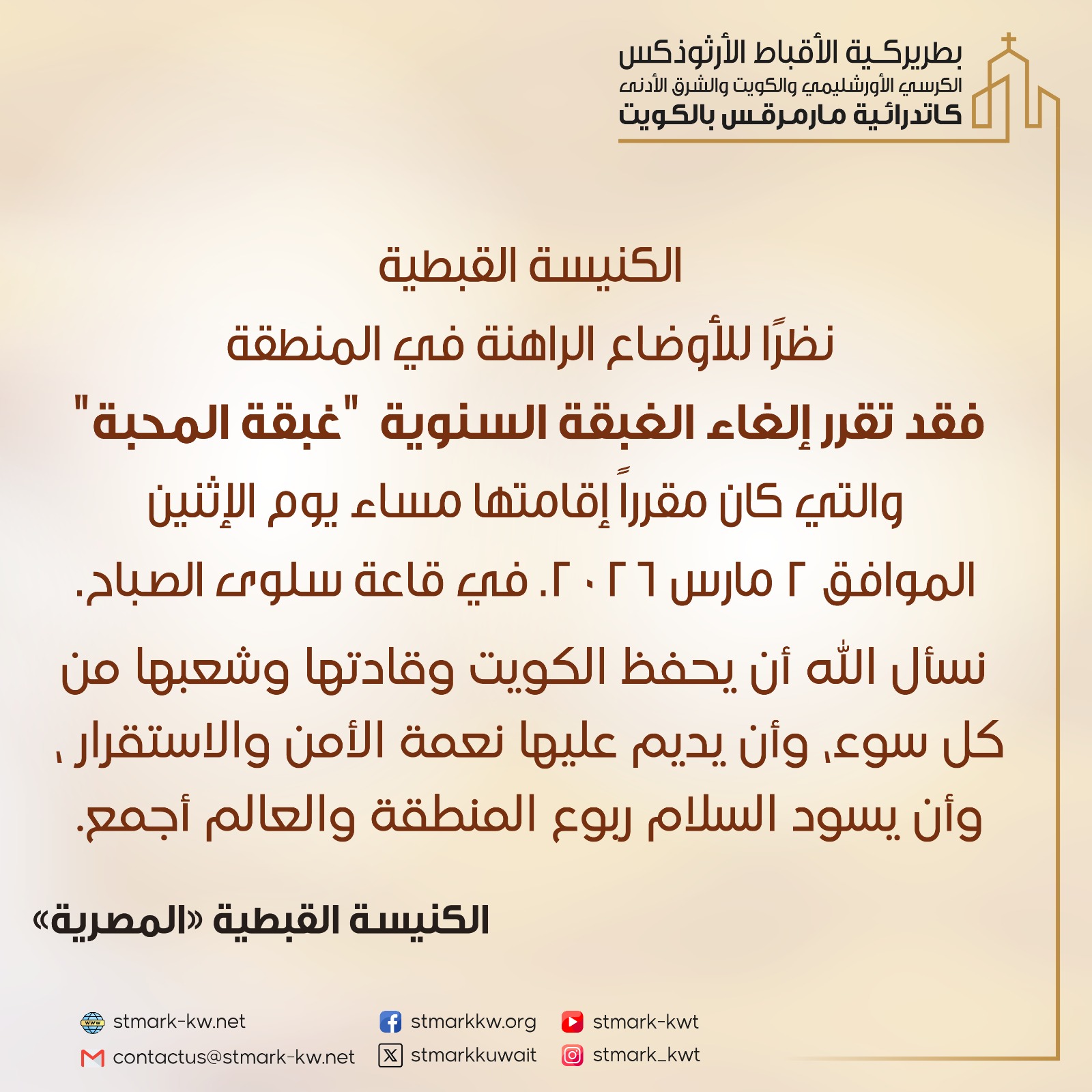 ورحلة بناء كنيسة القديس العظيم مارمرقس للأقباط الأرثوذكس بدولة الكويت، والتى بدأت منذ عام 1959 فى عهد المتنيح القديس البابا كيرلس السادس، وما صاحبها من مشاعر محبة وود صادقين من صاحب السمو المرحوم الشيخ/ عبد الله السالم الصباح أمير دولة الكويت رحمه الله، وولى عهده الأمين وحكومته الرشيدة. تلك المشاعر التى تُرجمت إلى أفعال وقرارات وامتدت وتواصلت فى عهد كل حكام الكويت الكرام شاهدة على مؤازرة رب المجد للجهود الجبارة التى بذلها العديد من أبناء الكنيسة الغيورين حتى وصلت الكنيسة إلى ما هى عليه الآن.